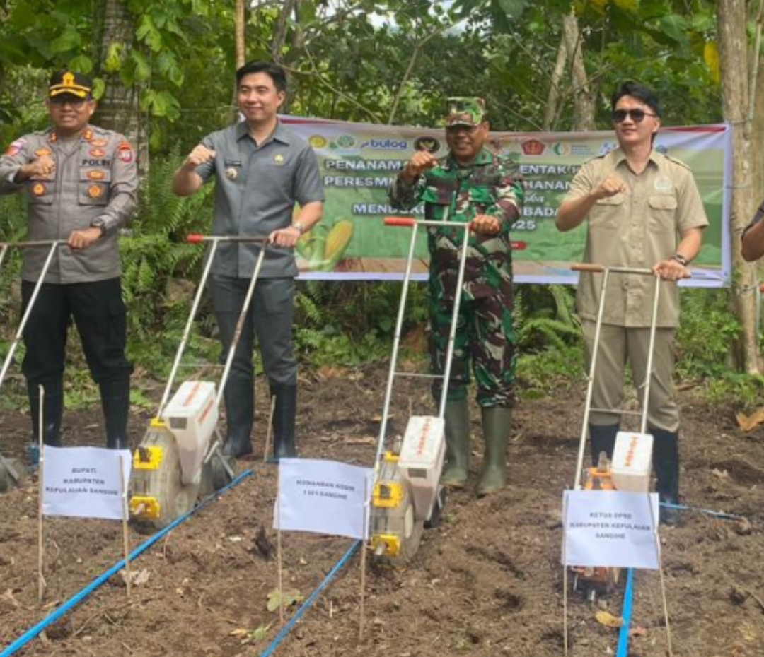 Emmctv.com,Tahuna- Rabu(8/10/2025), Kapolres Kepulauan Sangihe, AKBP Abdul Kholik, S.H, S.I.K, M.A.P, menghadiri kegiatan Penanaman Jagung Kuartal IV, di Lahan Pertanian, Kelurahan Santiago, Kecamatan Tahuna.
